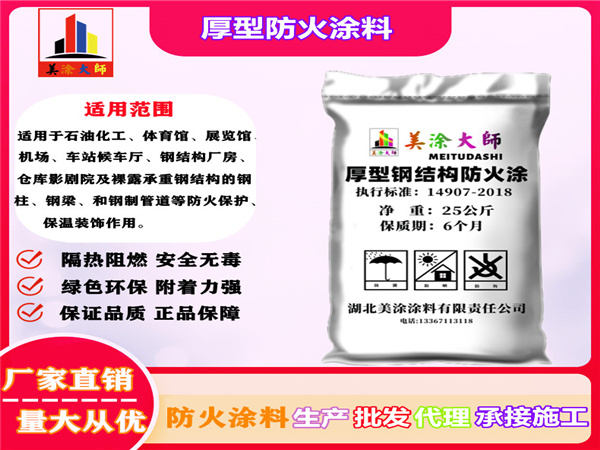 1、厚型钢结构龙川防火涂料是以无机绝热材料为主要成分组成,具有不腐蚀钢材、不与任何防腐底漆起化学反应、无刺激性气味、涂层质量轻(结构荷载重量相对也轻)、单位涂覆面积大、遇火时不产生烟气、不释放有害气体等特点。因此适用于各种新建、扩建和改建的工业与民用建筑工程中钢结构承重构件的防火涂装及防火保护,是一种理想的防火隔热涂料。